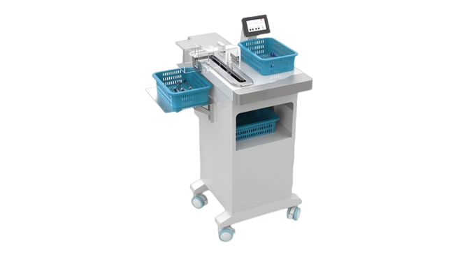 剥盖机用于静配中心西林瓶的剥盖,将西林瓶放入剥盖轨道,设备自动识别并将瓶与盖自动分离,同与具有计数功能,提高工作效率减轻了劳动强度。此款西林瓶剥盖机具有自动计数功能,在剥盖的同时屏幕显示剥盖的数量,保证剥盖数量的准确性。